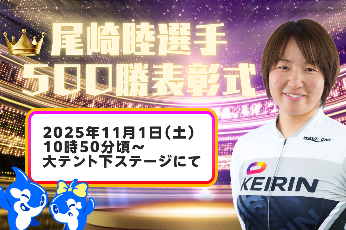 平塚競輪場に所属する尾崎睦選手が令和7年10月12日に500勝を達成しました!この功績を称え、表彰式を開催します!!