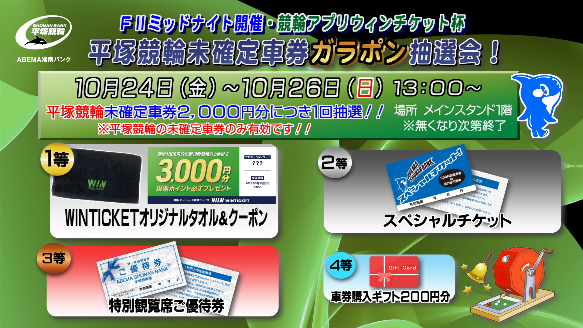 10/24~10/26 平塚競輪未確定車券ガラポン抽選会!