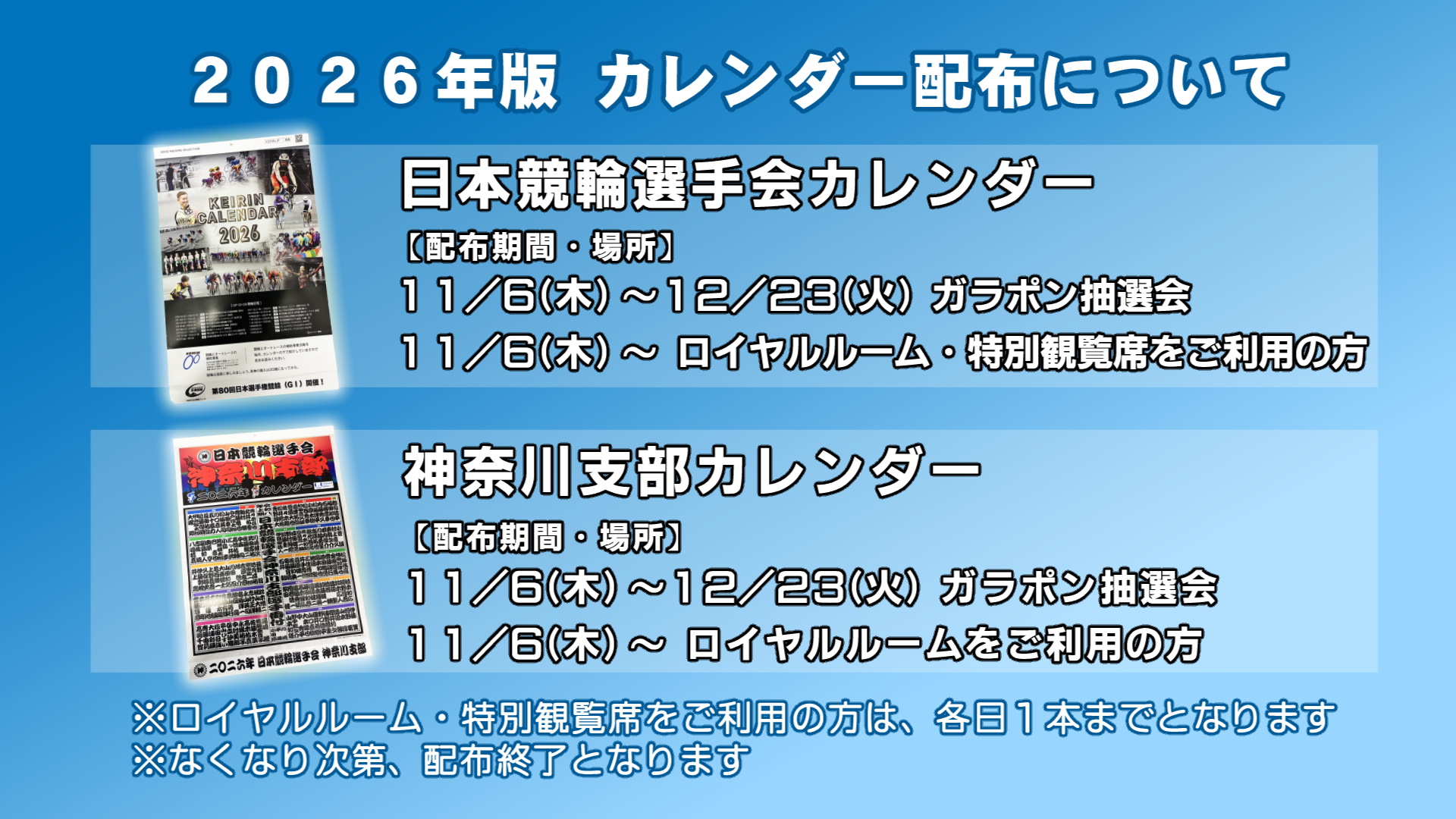 - 11/6(木)~12/23(火)未確定車券抽選会