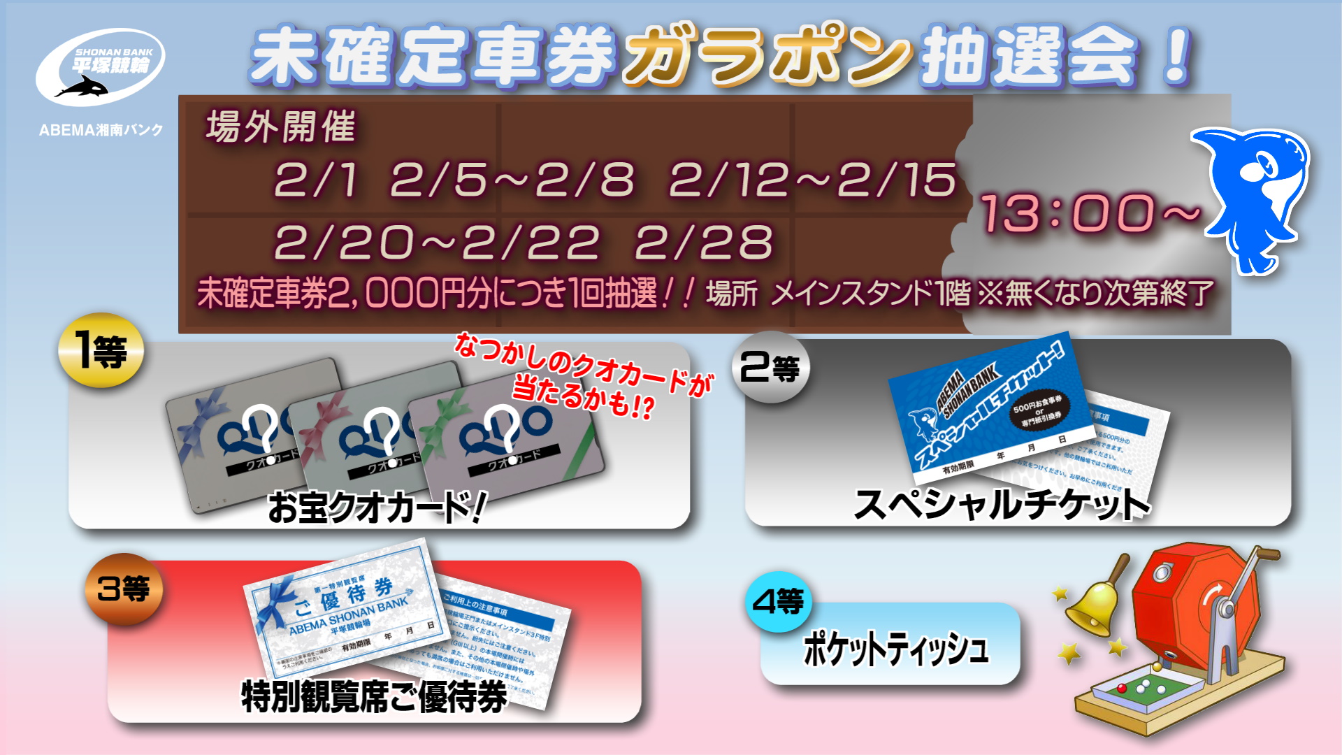 2月の場外開催期間、未確定車券ガラポン抽選会を実施します!