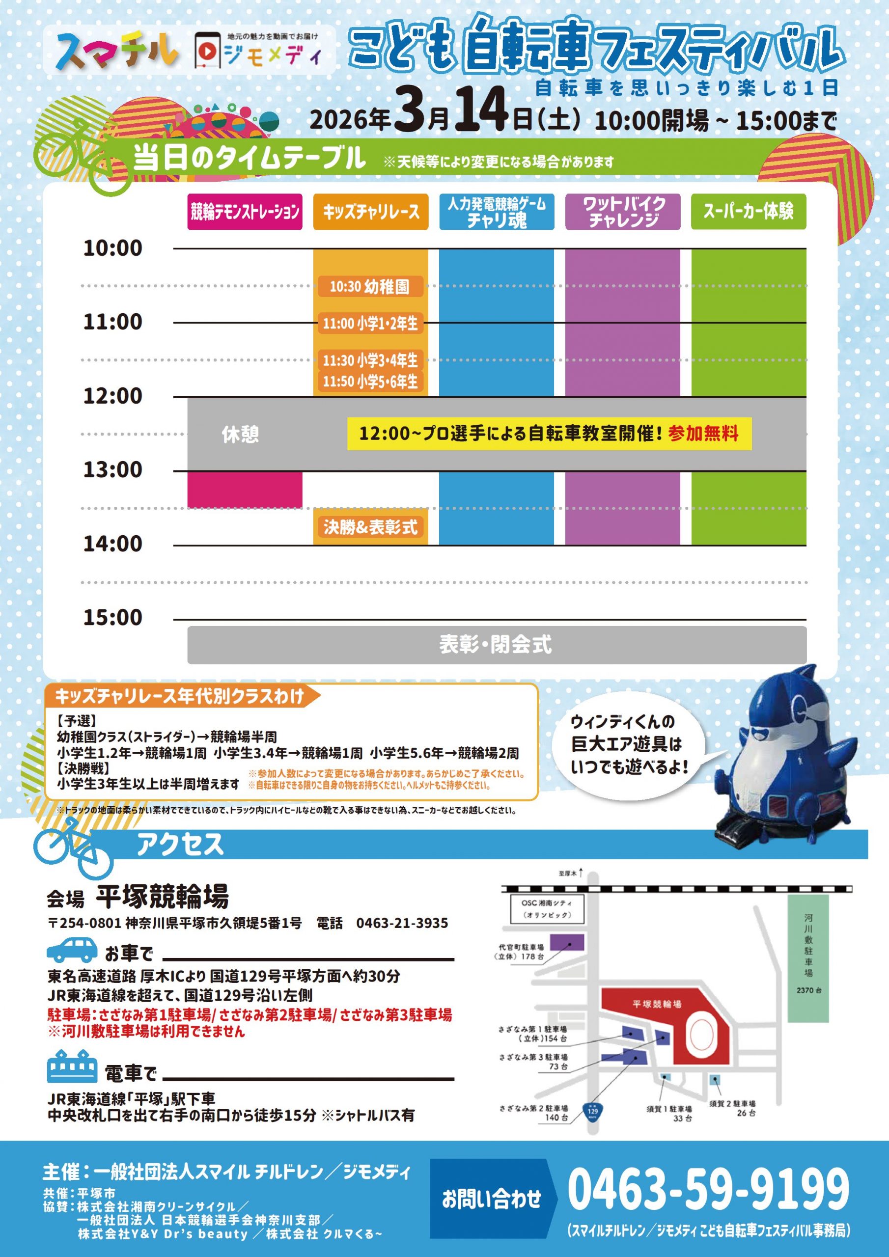 キッズチャリレース優勝者には、自転車をプレゼント!競輪選手によるデモンストレーションや、自転車教室も開催!