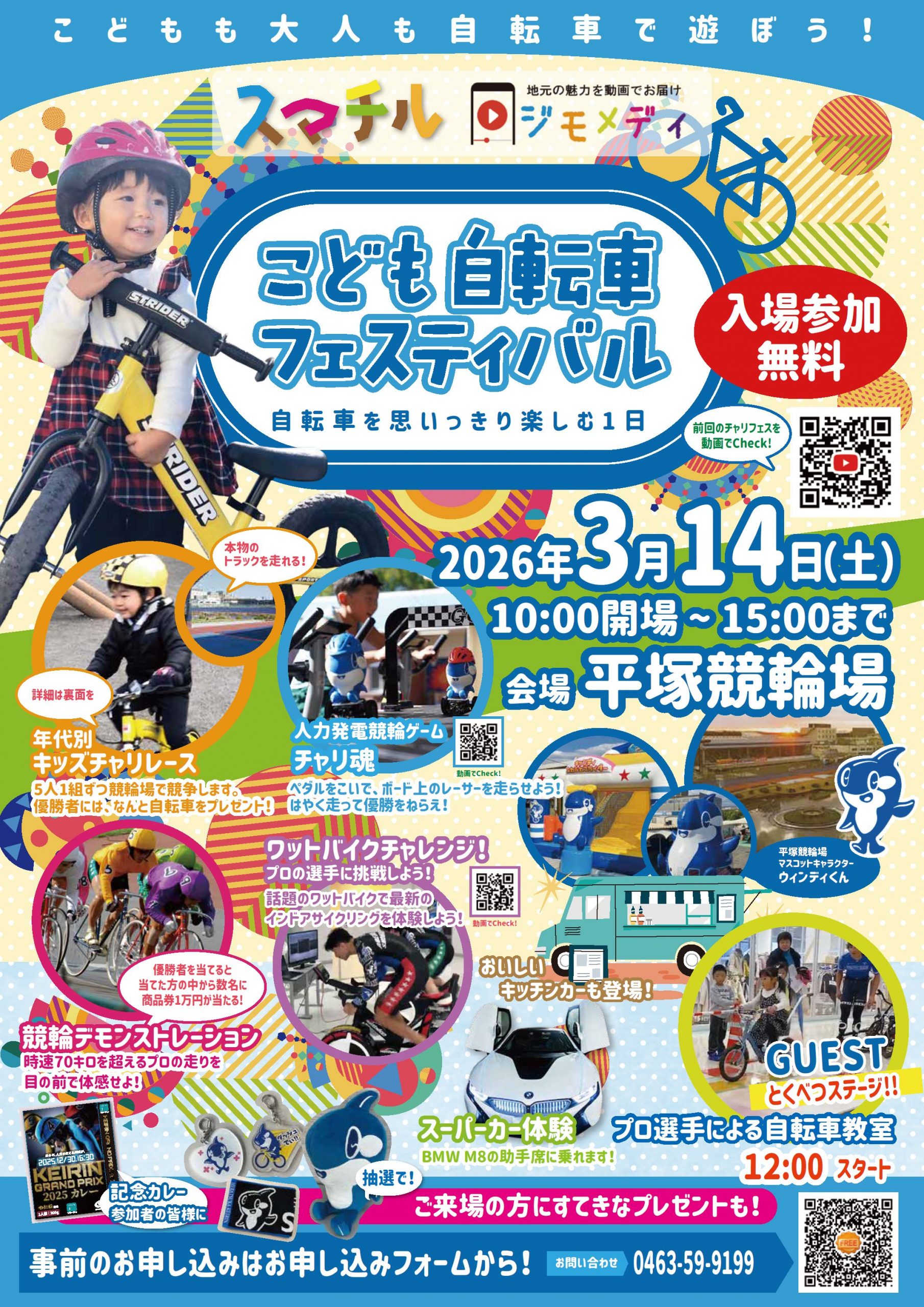 キッズチャリレース優勝者には、自転車をプレゼント!競輪選手によるデモンストレーションや、自転車教室も開催!
