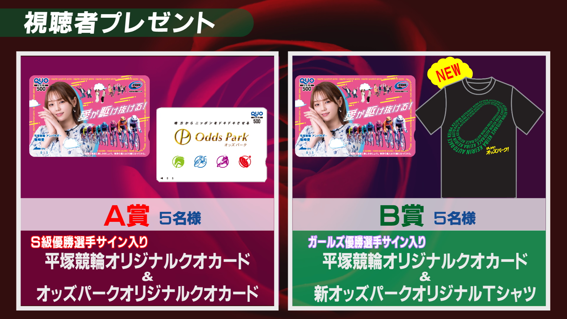 平塚競輪FⅠナイター 「湘南ローズカップ戸川杯×HPCJC×愛が駆け抜けるオッズパーク杯」 視聴者プレゼント!